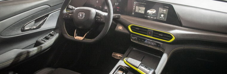 کلیدهای فیزیکی برای کنترل تهویه، یک کلید گردان برای تنظیم حالتهای رانندگی و مجموعهای از دکمههای آنالوگ روی فرمان وجود دارد. جا لیوانیها و فضاهای قرارگیری وسایل در جای معمول خود قرار دارند.